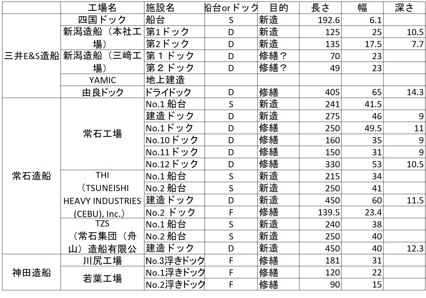 三井買収後の常石造船設備