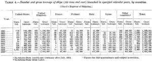 TABLE 4.—Number and gross tonnage of ships (100 tons and over) launched in specified calendar years, by countries. (Lloyd’s Register of Shipping.)